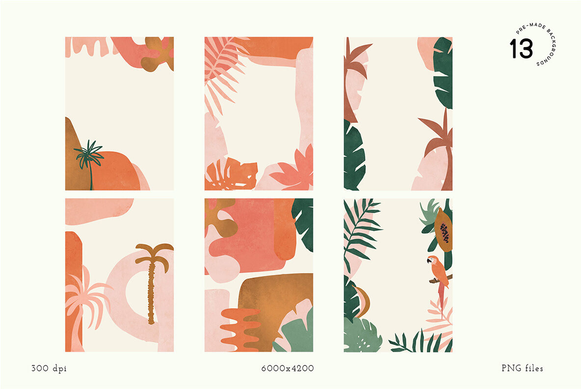 In this set you can find everything to produce stylish designs. Powerful women faces, harmonious abstract forms, trendy colour pallets, simple lined plants illustrations.