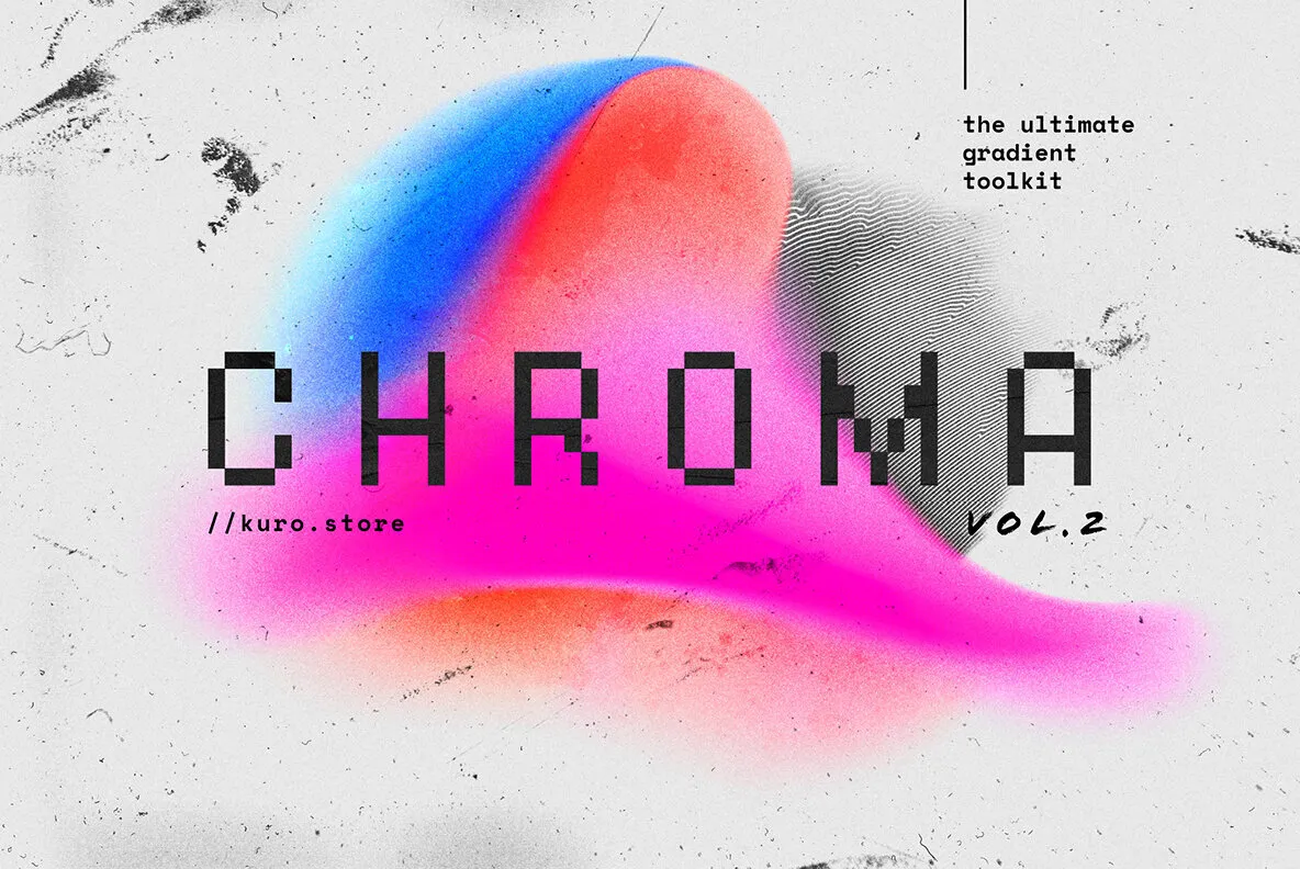 Chroma Grainy Gradient Textures Vol.2 – the second part of our bestseller combines gradient shapes with colorful gradients and abstract textures. For remarkable and modern designs for your project, like websites, brochures, posters or social media.