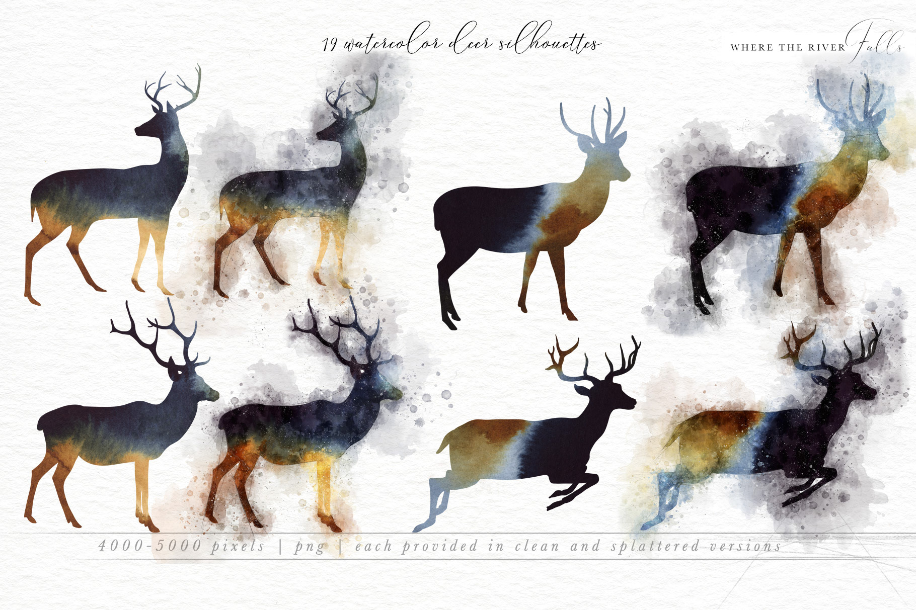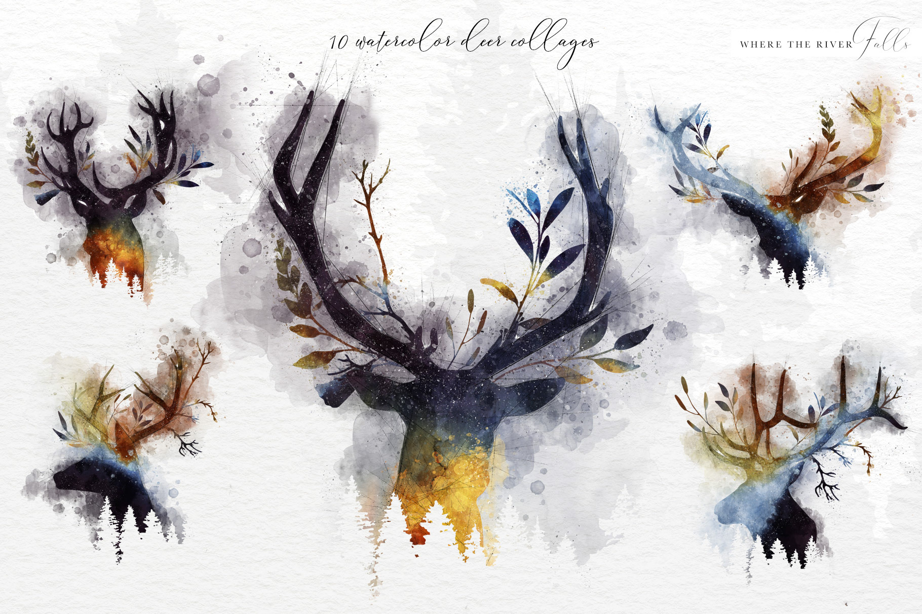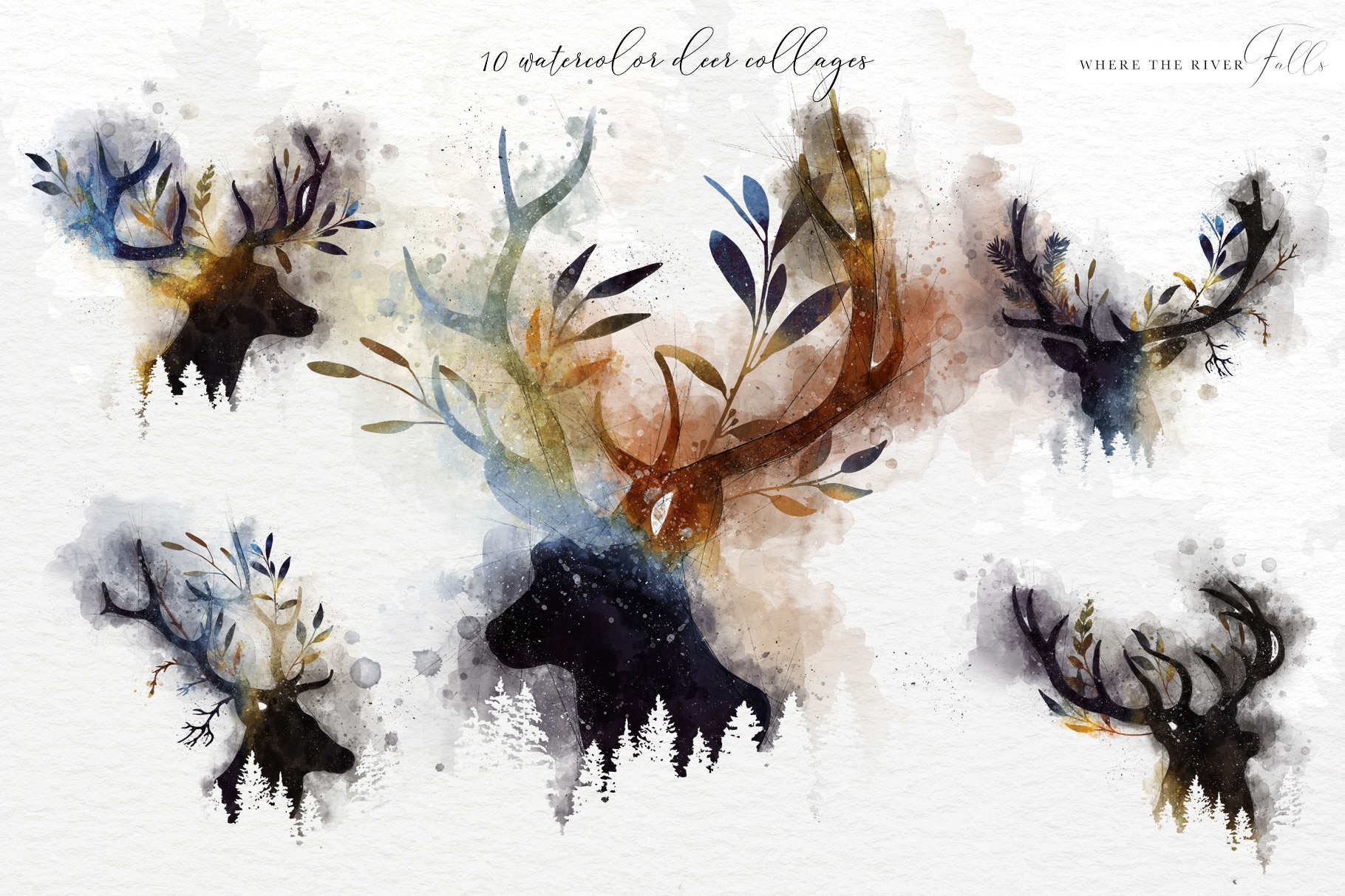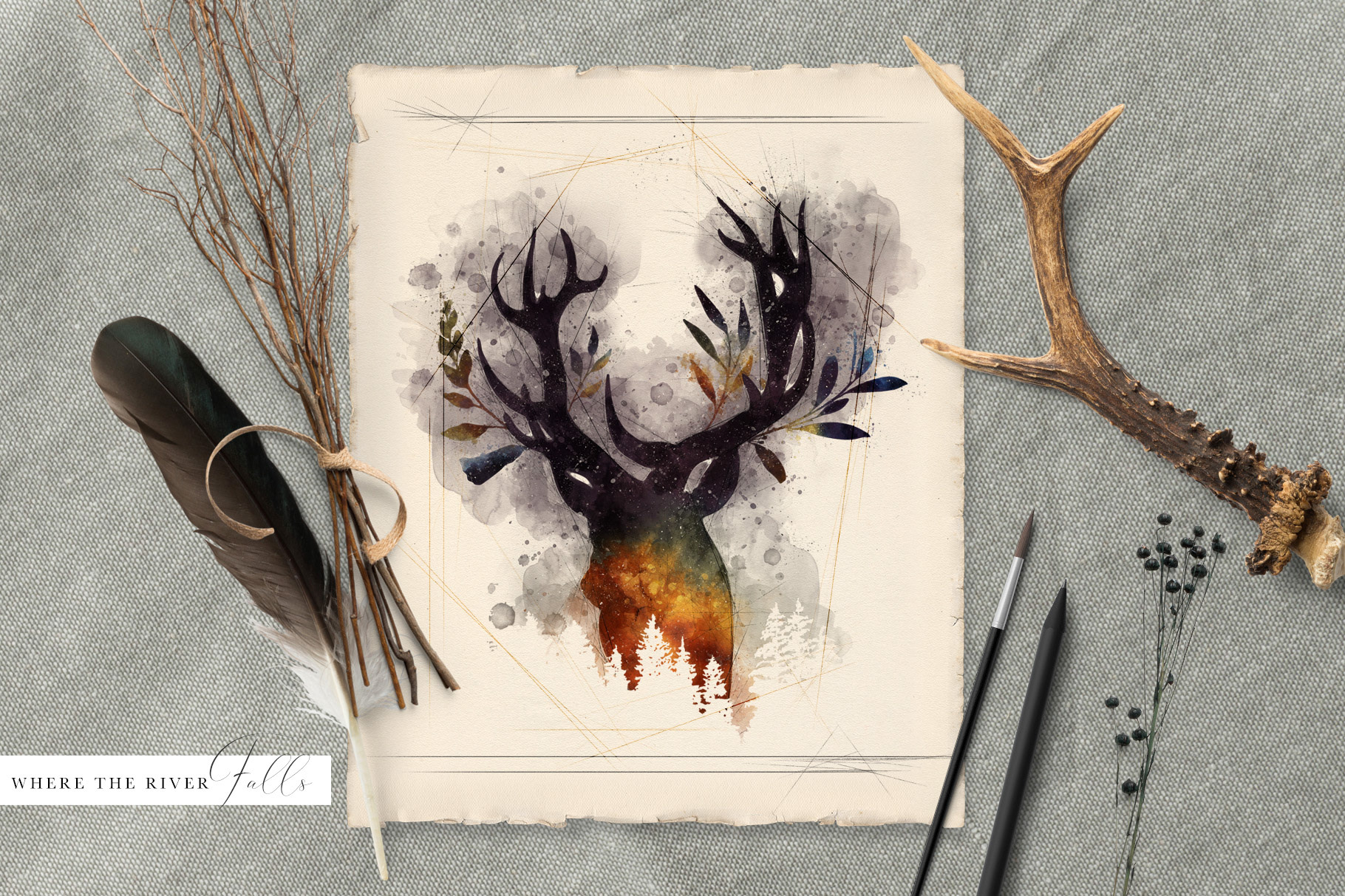 Included in this set: • 19 Watercolor Deer Illustrations • 4 Watercolor Bear Illustrations • 5 Watercolor Eagle Illustrations • 5 Watercolor Wolf & Fox Illustrations • 4 Watercolor Elk & Moose Illustrations • 7 Watercolor Branch Illustrations • 1 Watercolor Treeline Illustration • 3 Watercolor Moon Illustrations • 27 Watercolor Monograms – A-Z + Ampersand • 10 Watercolor Deer Head Collages • 4 Watercolor Washes • 19 Deer Silhouettes • 4 Bear Silhouettes • 5 Eagle Silhouettes • 5 Wolf & Fox Silhouettes • 4 Elk & Moose Silhouettes • 7 Branch Silhouettes • 1 Treeline Silhouettes